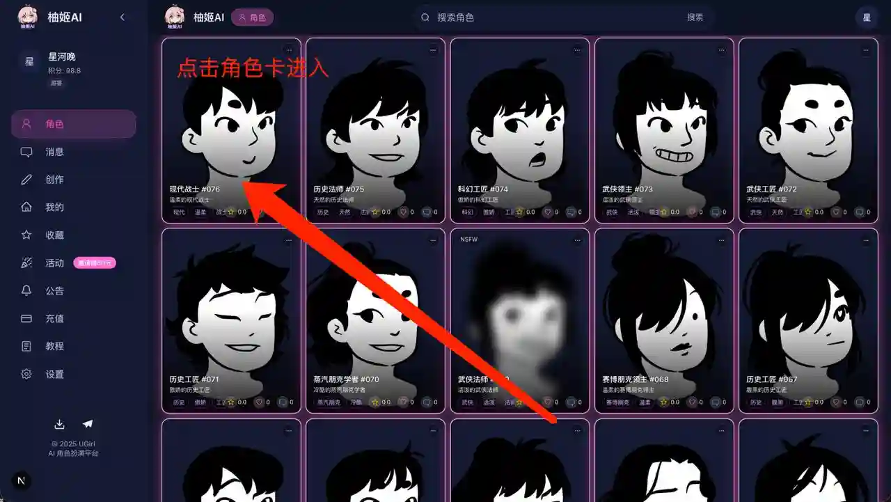 - 从角色卡详情页进入:在角色广场/列表里点进一个角色 → 进入详情页后点击 「开始聊天」