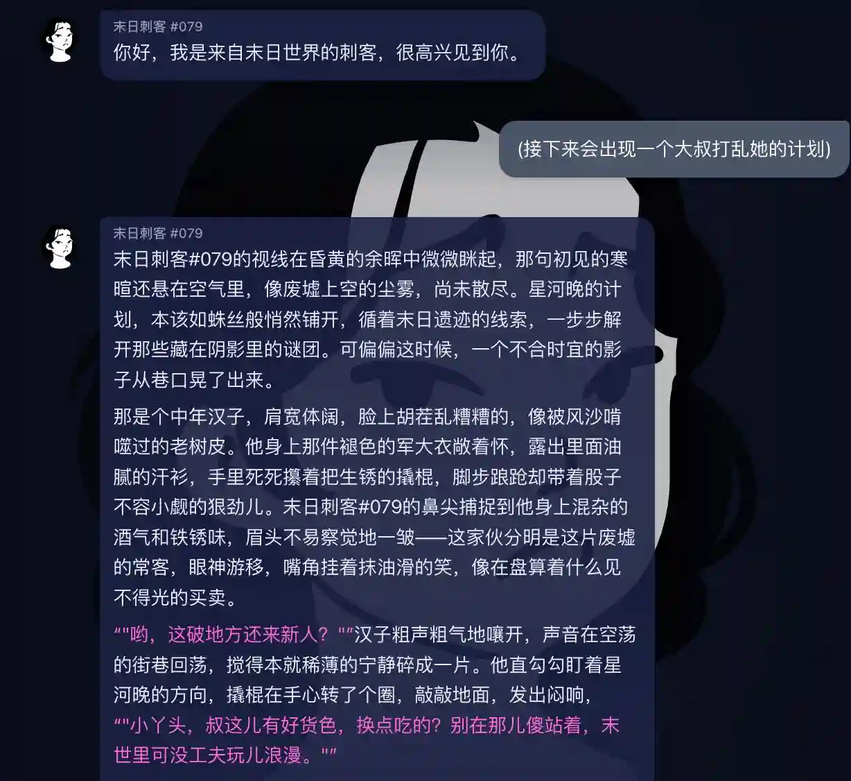 当您理解上下文的概念之后,我们可以来开始尝试一下角色卡对话,迅速尝尝鲜了,您只需要做对一件事:先把“开局”发出去,剧情就会自己跑起来。